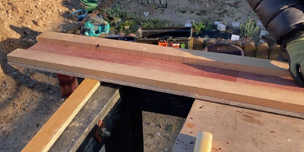 そこで、別の木材を木枠に貼り付けて、その木材にビス打ちを行いました。